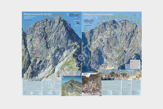 Mięguszowiecki Szczyt wschodnia ściana. Mięguszowiecki Pośredni ściana północna. Mapa TOPO