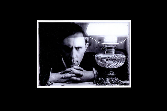 Pocztówka Stanisława Ignacego Witkiewicza - "Kolaps przy lampie" - autoportret