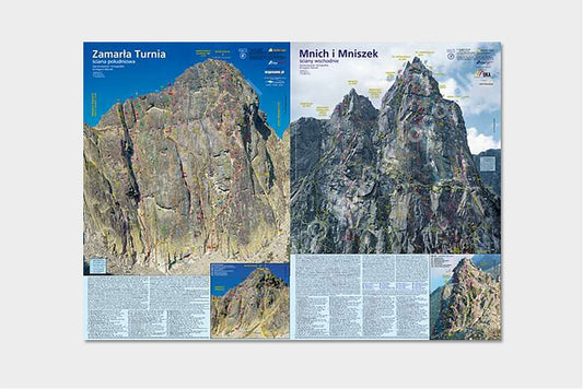Zamarła Turnia ściana południowa. Mnich i Mniszek ściany wschodnie. Mapa TOPO