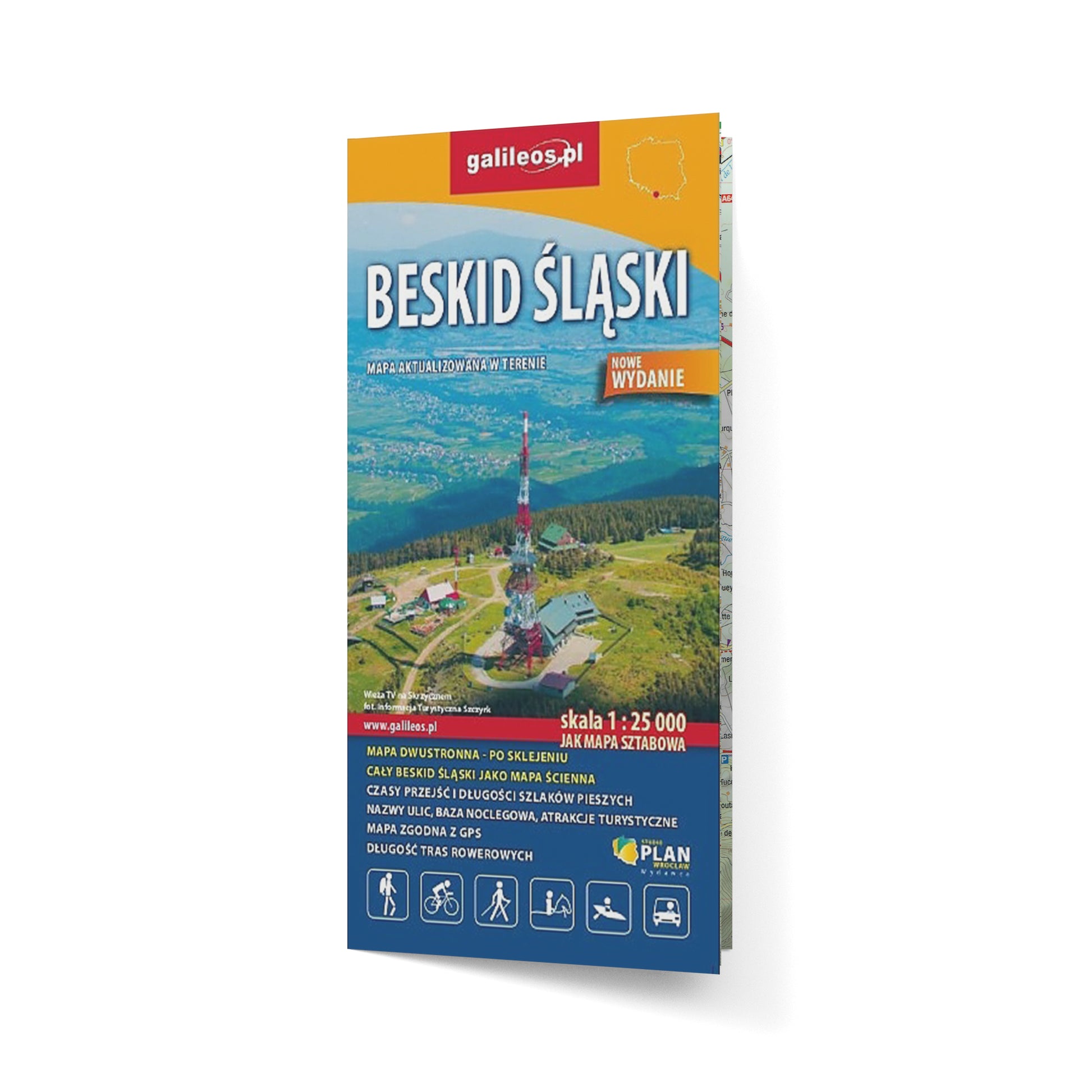 Mapa obejmuje Beskid Śląski, łącznie z takimi miejscowościami jak: Ustroń, Brenna, Wisła, Istebna, Bielsko-Biała, Szczyrk i Milówka. Na mapie zaznaczono m.in. zabytki, noclegi, bazę gastronomiczną, baseny, wyciągi narciarskie. Podano aktualne przebiegi szlaków pieszych i rowerowych, łącznie z kilometrażem, przy szlakach pieszych podano również orientacyjny czas przejścia, co pozwala łatwiej zaplanować wycieczkę. W miejscowościach podano nazwy ulic. Ukształtowanie terenu pokazano przy pomocy warstwic o cięciu co 20 m. Mapa posiada siatkę geograficzną opartą na elipsoidzie WGS 84, stosowaną w nawigacji.