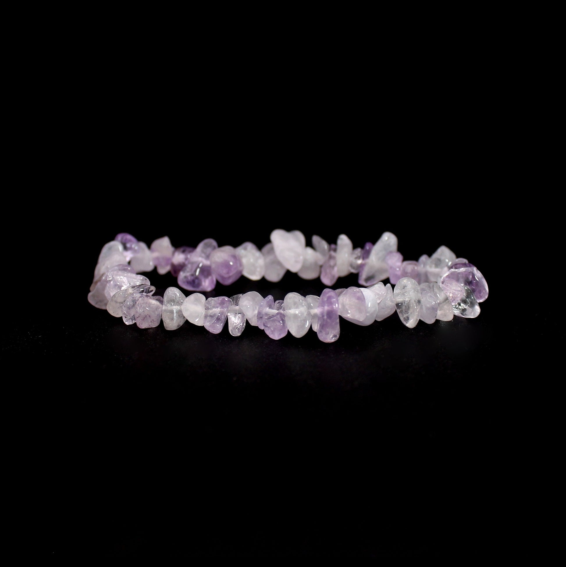 Bransoletka wykonana jest z nieregularnych otoczaków ametystu lawendowego nawleczonych na elastyczną gumkę.