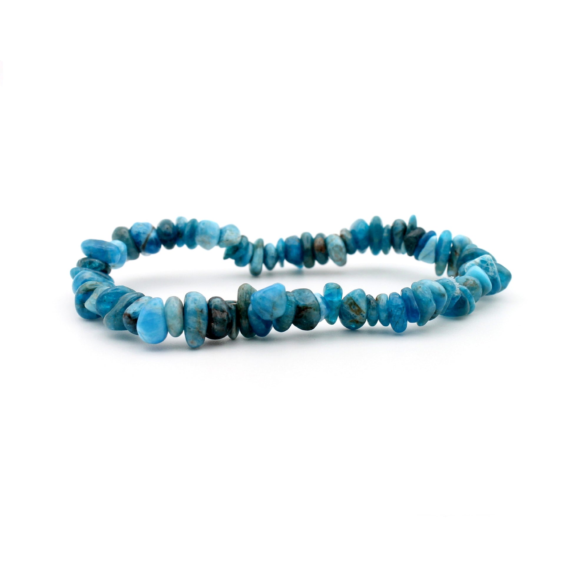 Bransoletka wykonana jest z nieregularnych otoczaków apatytu nawleczonych na elastyczną gumkę.