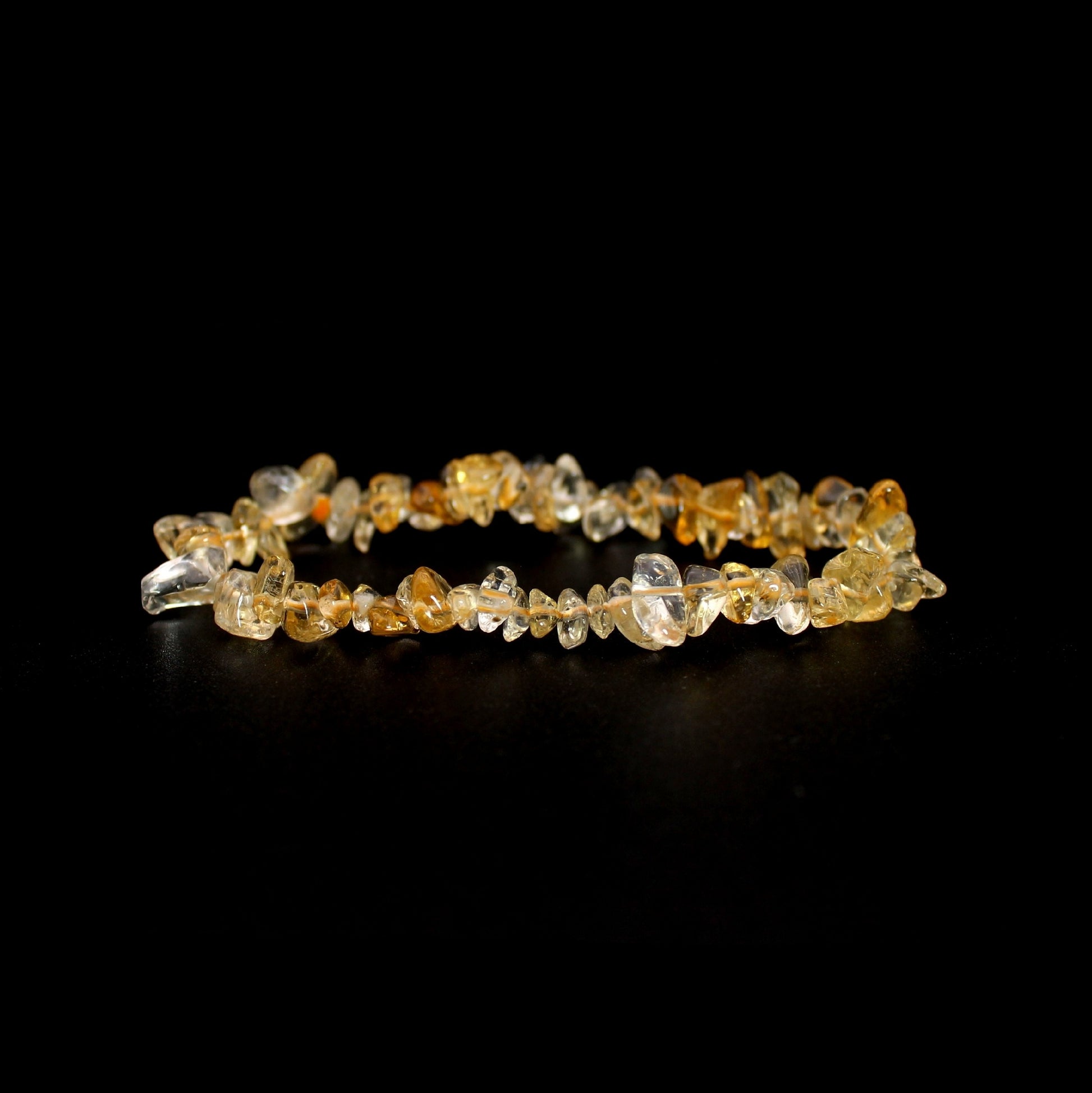 Bransoletka wykonana jest z nieregularnych otoczaków cytrynu nawleczonych na elastyczną gumkę.