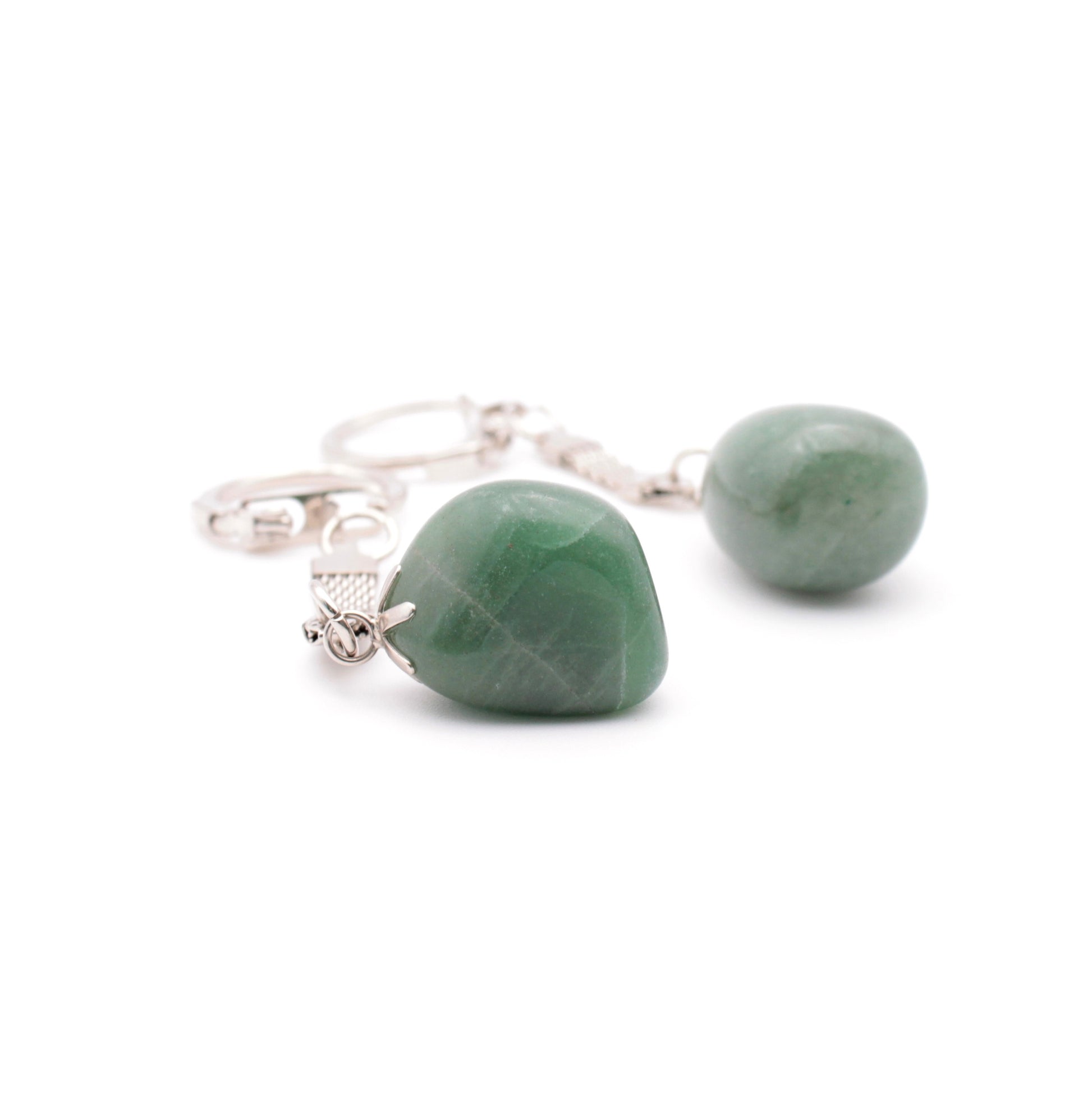 Brelok wykonany z naturalnego awenturynu – kamienia znanego ze swojego pięknego, zielonego koloru i subtelnego, migotliwego połysku. Ten efekt iskrzenia powstaje dzięki drobnym wrostkom minerałów, takich jak fuchsyt czy chloryt, które rozpraszają światło i nadają kamieniowi wyjątkowy blask.