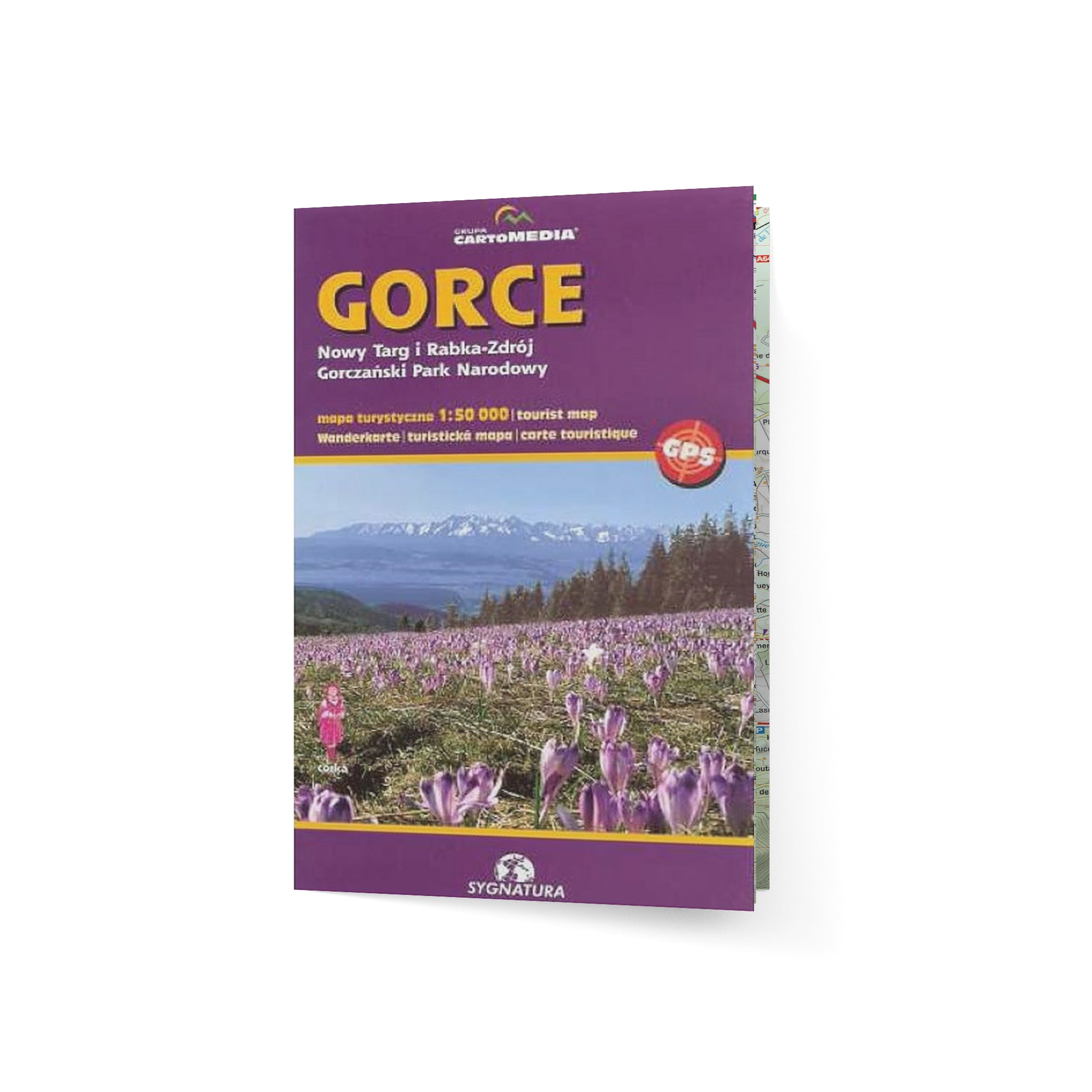 Mapa w skali 1:50 000 zasięgiem obejmuje całe Gorce, od Raby Wyżnej i Rabki-Zdroju po Krościenko nad Dunajcem, od Lubonia po Niedzicę.