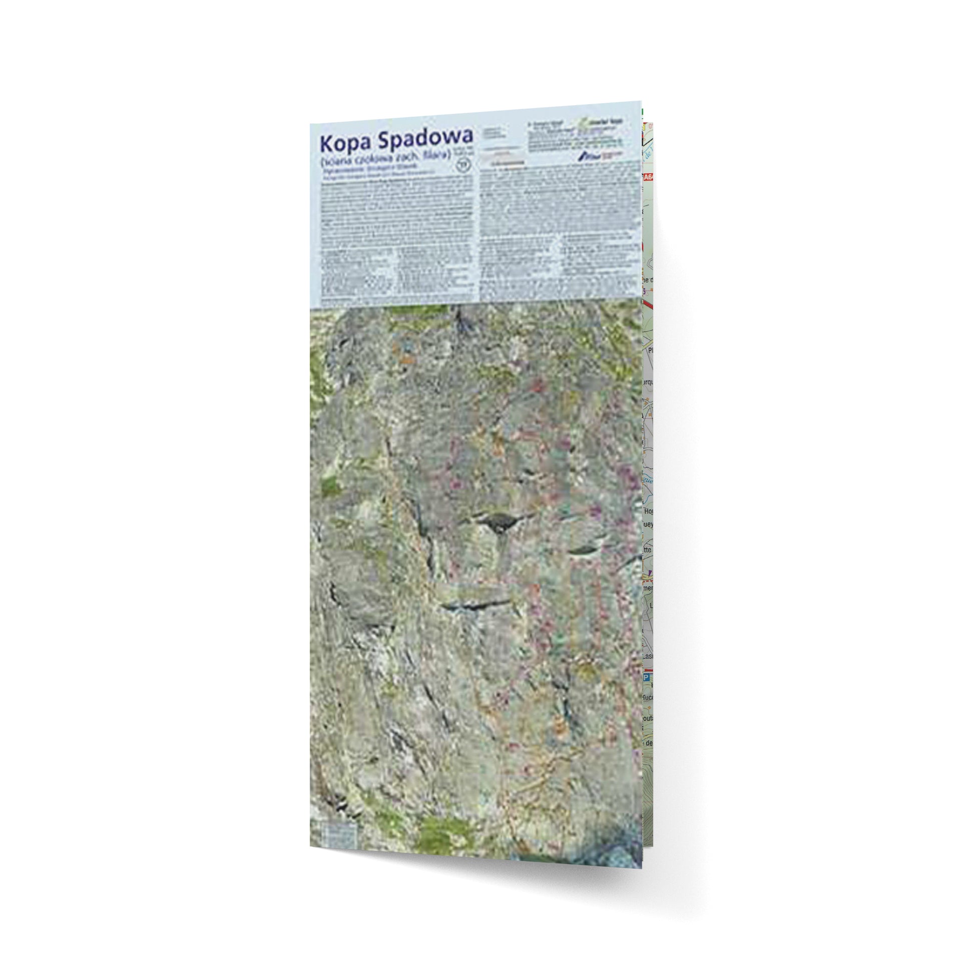 Opis dodatkowy do plakatu Kopa Spadowa: Nowe wydanie zasadniczo zmienione, większy format, nowe duże zdjęcie o wielokrotnie większej rozdzielczości, dodatkowe ujęcie ogólne pokazujące obie ściany (wraz z Żabim Mnichem, podejściami i połączeniami). Blisko 30 dróg i kombinacji klasycznych. Stan dróg, w tym stanowisk zjazdowych na lato 2014.