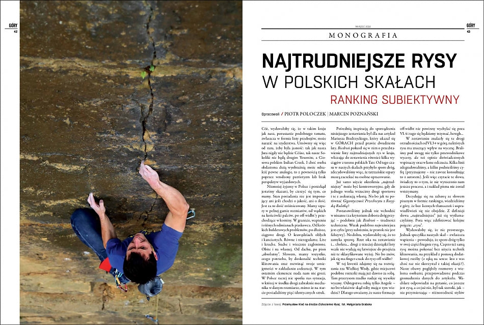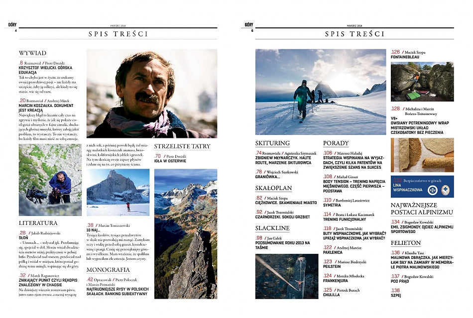 W pierwszym numerze GóR w nowej odsłonie, na 144 stronach znajdziecie m.in. wywiady z Krzysztofem Wielickim i Marcinem Koszałką, monografię rys w Polsce, wspomnienia Marcina Tomaszewskiego i Marka Raganowicza, skałoplany Ciężkowic i Czarnorzek, skitury - Haute Route i Tatry, a także 25 stron porad (trening, rehabilitacja, dieta, miejscówki na majowy weekend).