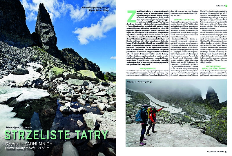 W numerze Hansjörg Auer opowiada o zdobyciu Kunyang Chhish East i Dolomitach, Andrzej Bargiel o zjeździe na nartach z ośmiotysięcznika. Ponadto niezwykłe Tatry: Zadni Mnich i Śnieżna Grań, Chamonix dla każdego, wywiad z Jackiem Trzemżalskim, wspinanie w Yosemitach w czasie government shutdown, skałoplany Mirowa i Muchówki oraz wiele innych, ciekawych materiałów.