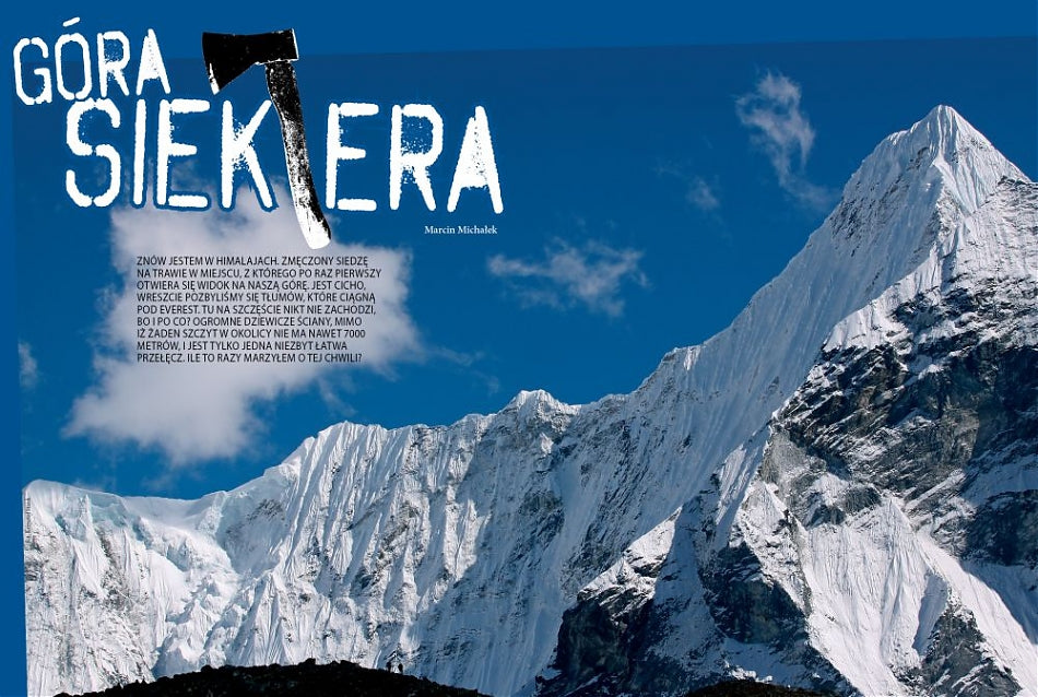 Ci z Was, którzy od lat śledzą nasze GÓR-skie ścieżki, wiedzą, że przykładamy szczególną wagę do wyboru i opracowania naszych okładek. Było nie było, pierwsza strona jest wizytówką każdego wydania. Najczęściej po prostu zapowiada największy lub najważniejszy materiał numeru, czasem zaś odnosi się do szczególnie ważnych wydarzeń w górskim świecie. Zdarza się jednak, że idziemy w innym kierunku - eksperymentujemy, staramy się zaproponować coś nowego. Tak jest tym razem. Postanowiliśmy stworzyć szczególny - mamy nadzieję rzucający się w oczy i zapadający na długo w pamięć - kolaż dwóch zdjęć.