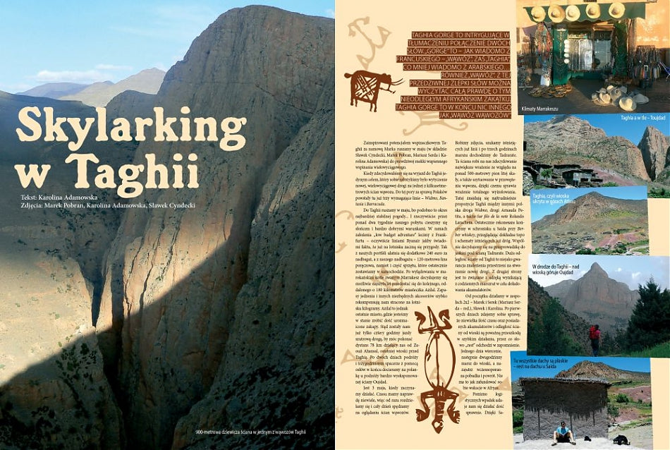 Wspomniane wyżej materiały oddzielają dwa artykuły dotyczące ciekawych górskich i wielkościanowych przejść z 2009 roku. W pierwszym niedawny gość Krakowskiego Festiwalu Górskiego, Rafał Sławiński, opowiada o swoich wakacyjnych przygodach w Pakistanie. Drugi to wspomnienie z wytyczenia nowej polskiej drogi w marokańskim wąwozie wąwozów - Taghii.