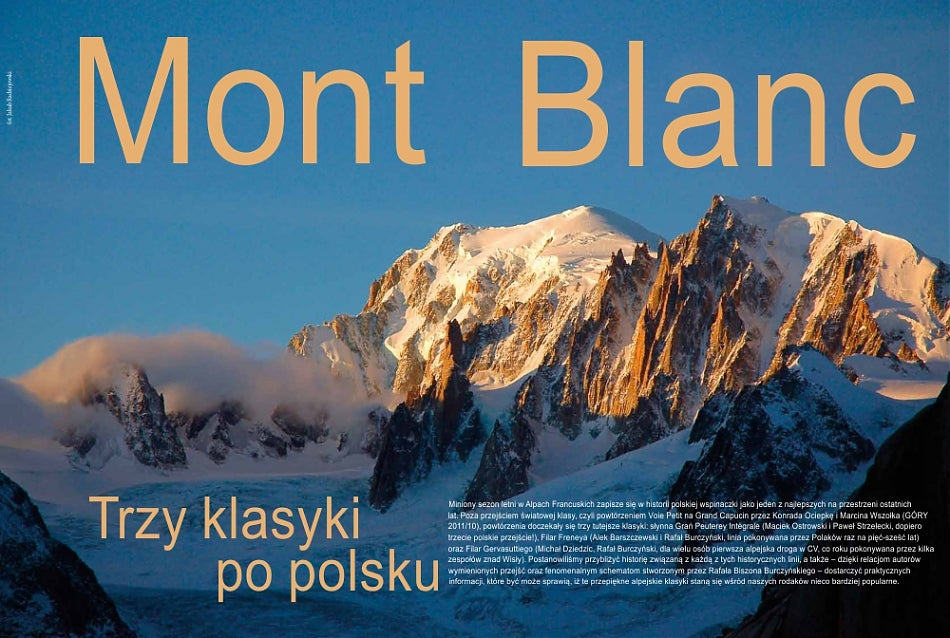 Najważniejszym tematem numeru są Alpy - a konkretnie trzy klasyczne drogi w masywie Mont Blanc. Każdej z nich poświęcony jest odrębny materiał podzielony na: relację z polskiego przejścia, informacje praktyczne i doskonały rys historyczny przygotowany przez Kubę Radziejowskiego. Dodatkowym atutem są toposy dróg przygotowane przez Rafała Biszona Burczyńskiego, które śmiało można nazwać jedynymi z najlepszych alpejskich schematów, jakie do tej pory pojawiły się na łamach polskiej prasy górskiej. Wszystko wskazuje na to, że mogą nam ich pozazdrościć nawet najlepsze zachodnie magazyny.