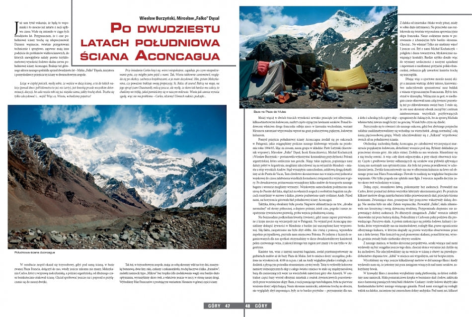 PO DWUDZIESTU LATACH. POŁUDNIOWA ŚCIANA ACONCAGUA - tekst: Wiesław Burzyński, Mirosław "Falco" Dąsal, zdjęcia: Wiesław Burzyński