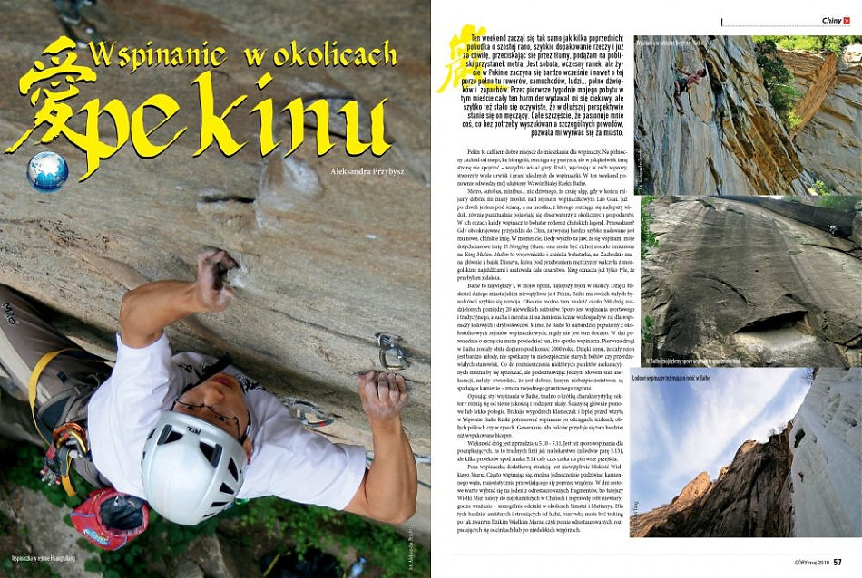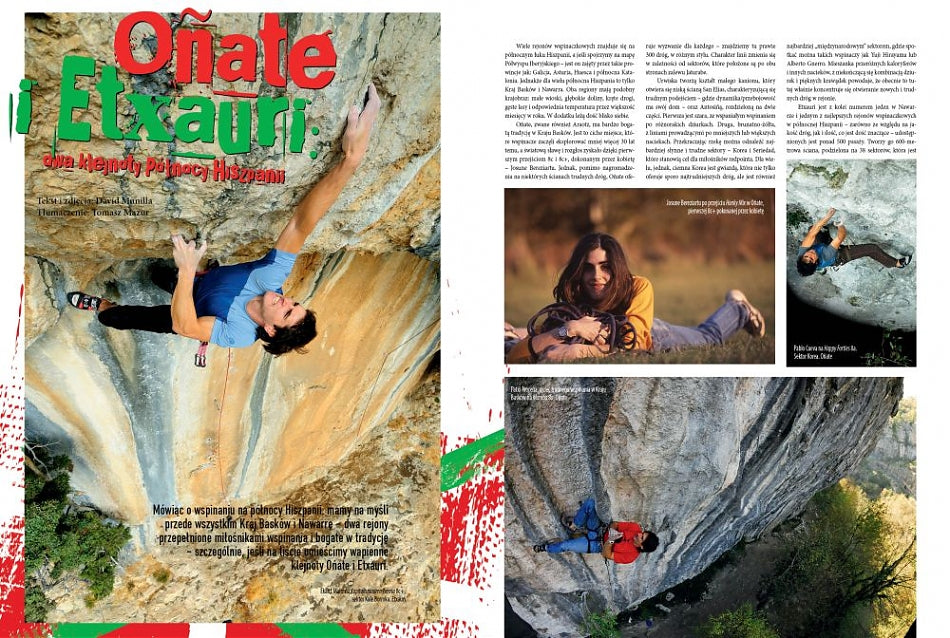 Odpocznijmy przez chwilę od wywiadów, które - co się ostatnio nierzadko zdarza - zdominowały numer. Pełnia wiosny obliguje do odpowiedniej porcji skalnych propozycji. Dwa baskijskie rejony Oñate i Etxauri może nie są idealną propozycją na środek wakacji, ale na jesienny wypad w skały, który warto już zaplanować (zwłaszcza przy pomocy tanich linii lotniczych) - na pewno.Wspinanie w okolicach Pekinu z pewnością nie stanie się ulubioną destynacją naszych wspinaczy skalnych, ale warto dowiedzieć się, jak uprawiają ten sport mieszkańcy tej azjatyckiej metropolii, której populacja jest niewiele mniejsza niż połowa populacji Polski. Może ktoś postanowi połączyć wspinanie ze zwiedzaniem Wielkiego Muru i innych okolicznych atrakcji - wówczas wskazówki Oli Przybysz będą jak znalazł.