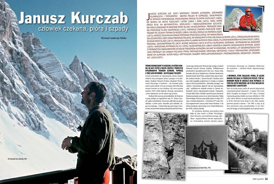 Nie jest to jedyny "megawywiad" numeru. Do tego miana pretenduje także arcyciekawa rozmowa Andrzeja Mirka z osobą niezwykle zasłużoną dla polskiego alpinizmu, ale także dla górskiego dziennikarstwa i historiografii - Januszem Kurczabem. Tym razem materiał ilustracyjny jest bardziej tradycyjny, ale jest to "tradycja" przez duże "T" - wiemy, że wielu z Was ma sporą słabość do takich archiwaliów, zwłaszcza jeśli mają tak wysoką jakość, jak w tym przypadku.