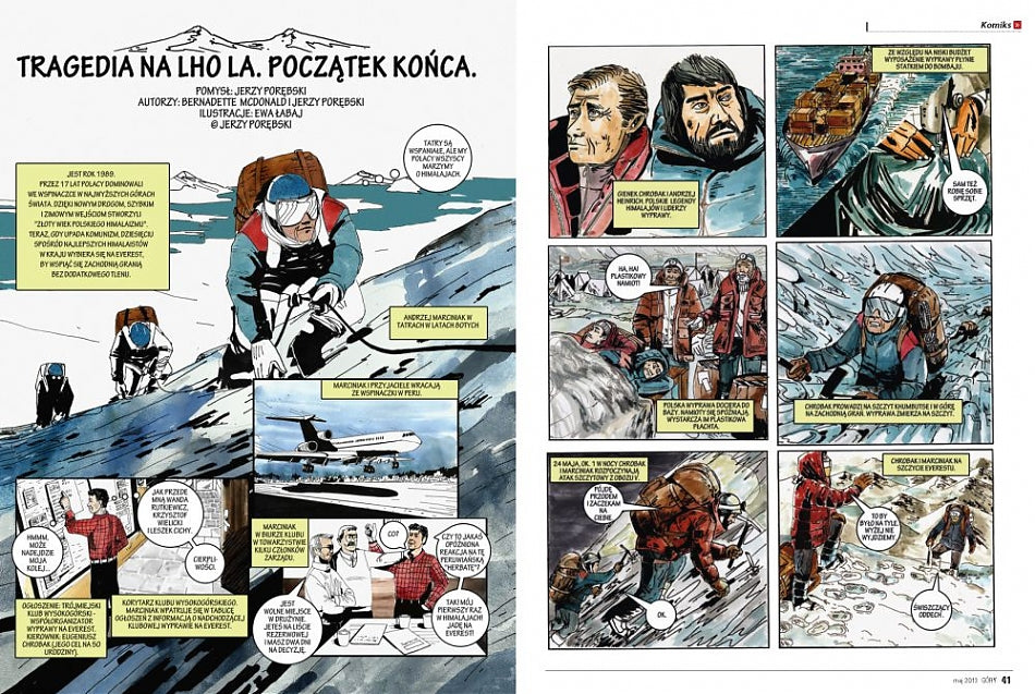 Mija właśnie 24. rocznica tragedii pod Everestem. W 1989 roku na zboczach Lho La zginęli czołowi polscy himalaiści. Postanowiliśmy przypomnieć tamte wydarzenia, prezentując je w formie komiksu przygotowanego przez Jerzego Porębskiego i krótkiego tekstu historycznego, który jest jego dopełnieniem i uszczegółowieniem.