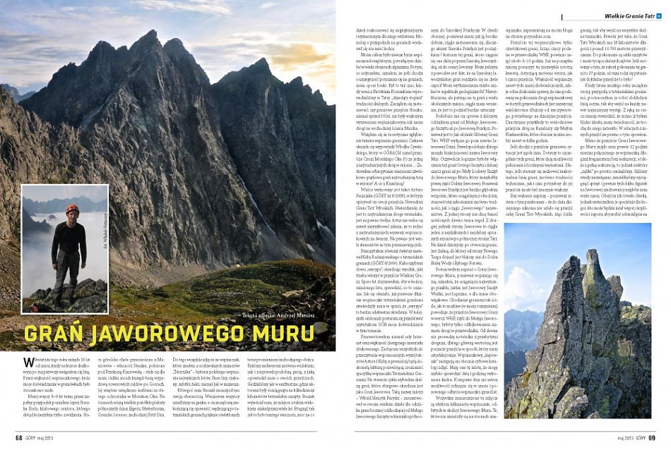 Opisem Grani Jaworowego Muru Andrzej Marcisz zainaugurował na naszych łamach nowy, świetnie zapowiadający się cykl "Wielkie granie Tatr". Znajdziecie w nim nie tylko informacje praktyczne dotyczące przejścia, ale także nieco ogólnych rozważań o pokonywaniu tatrzańskich grani. Nie zabrakło też oczywiście świetnych zdjęć i panoram ilustrujących tekst.