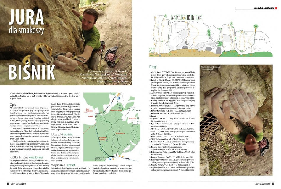 Czerwcowy numer wypełniają topa i skałoplany: Malinowa w Dolinie Janówki, Dziób na Janowickim Grzbiecie, skały wzgórza Trojak w Lądku, Biśnik na Jurze. Także podróże do Ameryki Południowej. Ważne miejsce zajmują stałe rubryki GÓR-skie.