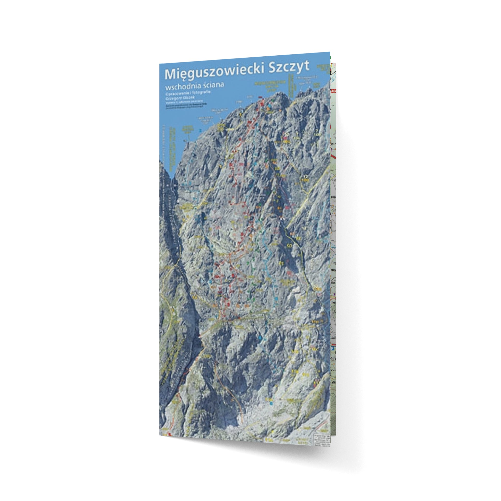 MIĘGUSZOWIECKI Szczyt wschodnia ściana. Mięguszowiecki Pośredni ściana północna. Mapy w pionie. Dwa wielobarwne plakaty-topo (składane). Opracowanie i fotografie Grzegorz Głazek. Warszawa Kielce 2019. Wydawcy: Master Topo i Antykwariat Górski FILAR.
