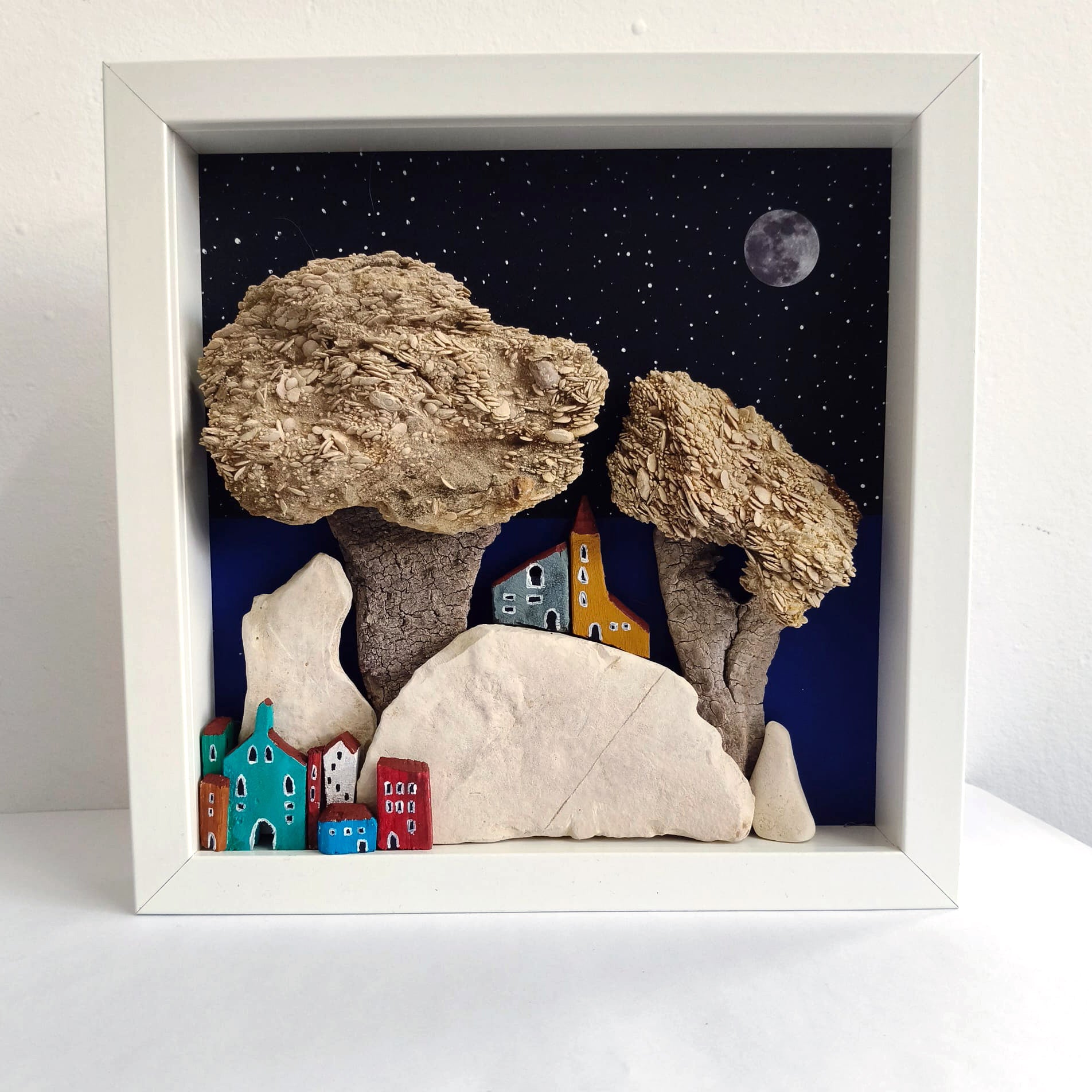 rozmiar ramki: 252x252 mm, głębokość 44 mm, obrazek można postawić na ramce albo zawiesić.
