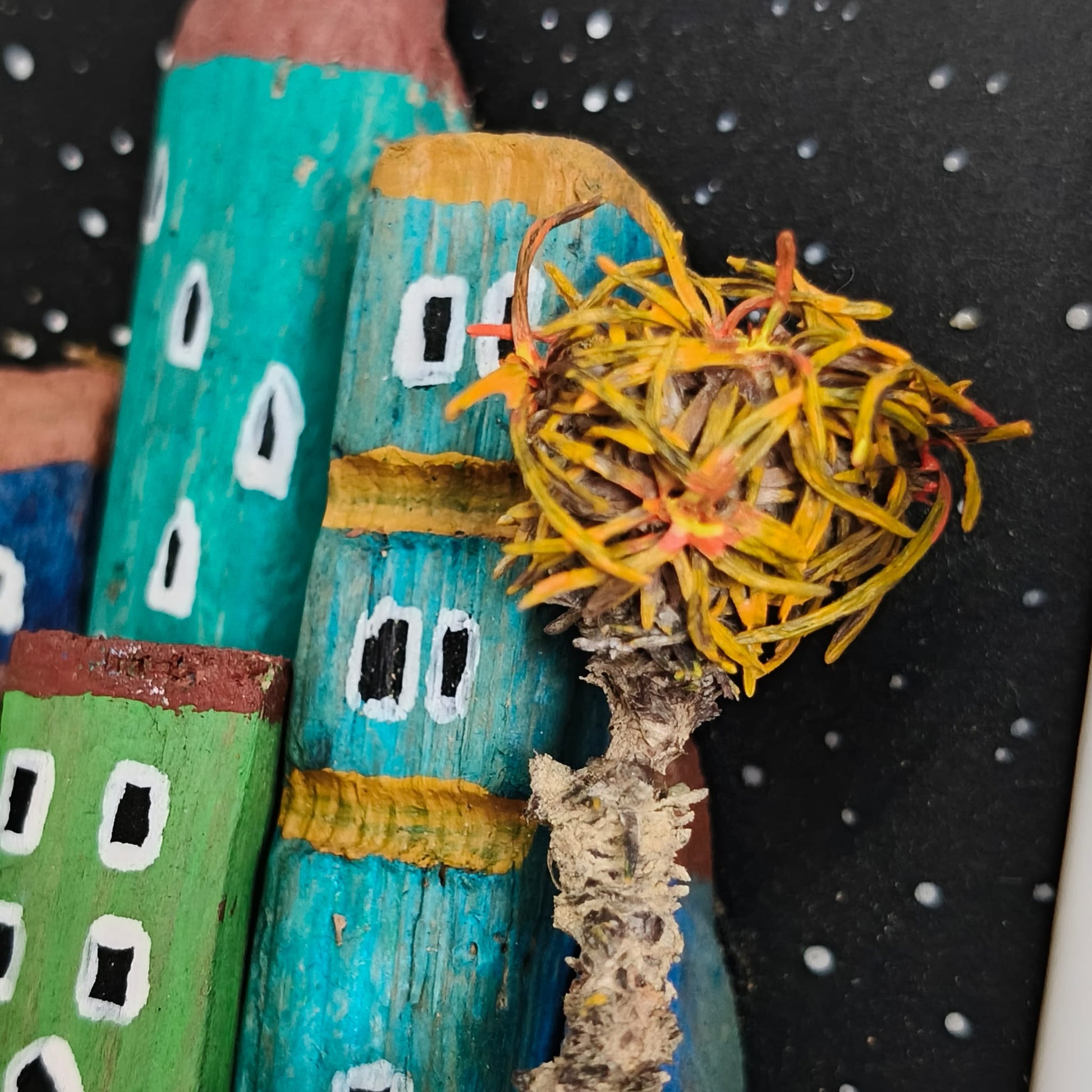 materiał: wapien, drewienka na domki zewsząd.
