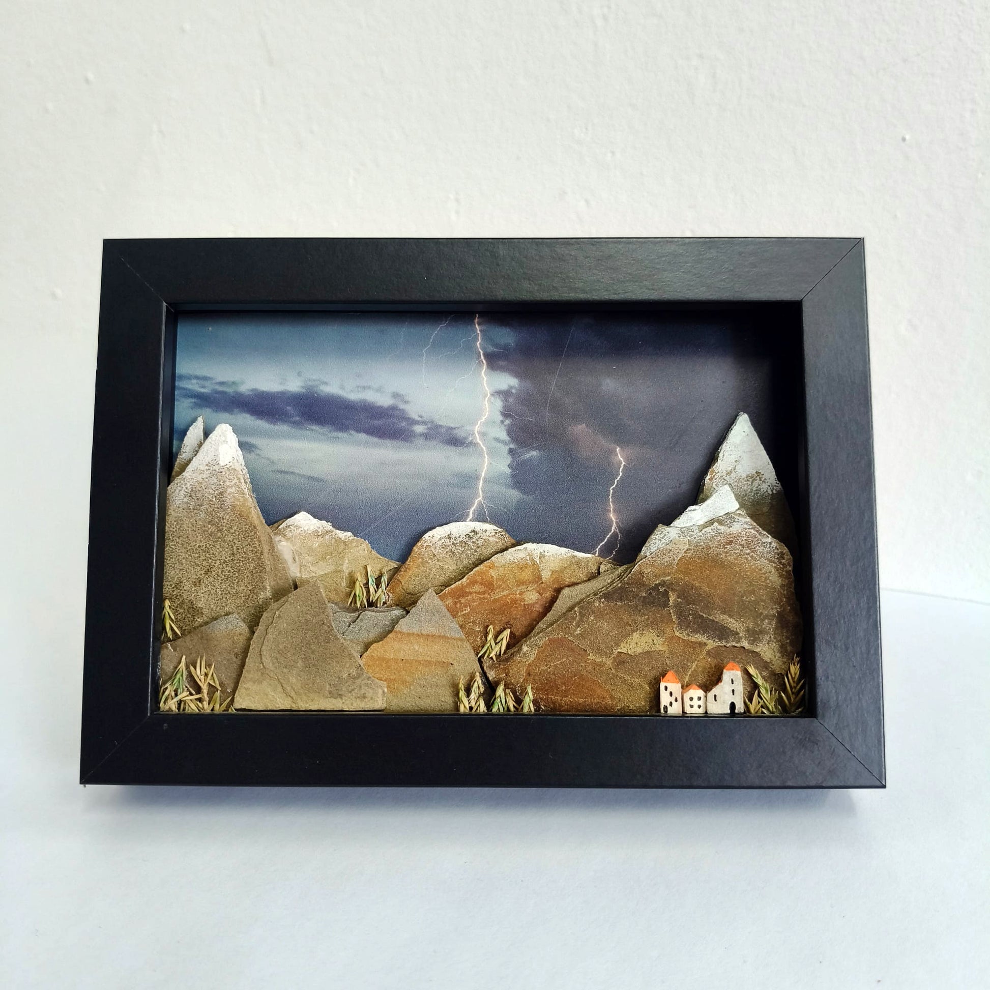 rozmiar ramki: 167x118 mm, głębokość 32 mm, obrazek można postawić na ramce lub oprzeć na nóżce, albo zawiesić.