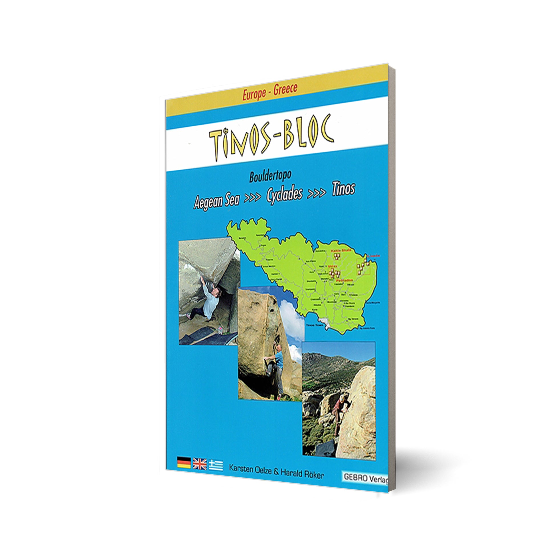 The Tinos-Bloc guidebook describes the bouldering found on the Greek island of Tinos in the Aegean Sea. On Tinos there is a 20 sqkm granite bouldering field and this guidebook covers over 600 problems across a wide range of grades. In total 16 different sectors are described, however there is potential for developing many more problems and the guidebook indicates where this potential is.